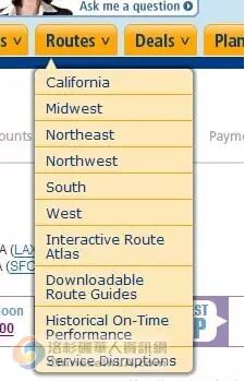 右上角有个route,所有线路都可以在那里显示点进去详细看了看,california里面会显示所有的线路