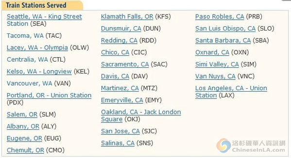 coast starlight 是从洛杉矶到西雅图的,到旧金山最近的城市是oakland,之后还需要换bus。coast starlight的所有站~