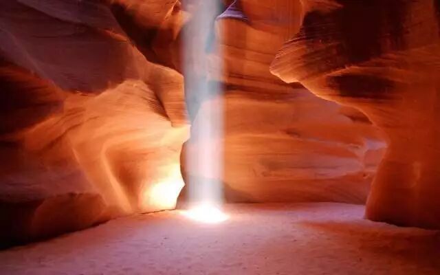 水造的羚羊谷,看起来真是丝般顺滑。这里分上羚羊谷和下羚羊谷,其中最多开放的是前者。上羚羊峡谷的入口不是很明显,远远看去只有一条很细的裂缝,进入峡谷后,某些地方可能相当阴暗,没有光线直射到地面上,岩壁高耸约有20米,总长约150米,摄影师进入此区通常需备有脚架和闪光灯,由于游客众多,想要拍到一束日光射入和无人的景观,需要一些耐心。大中午的光线最好,能看到传说中的“光柱”。