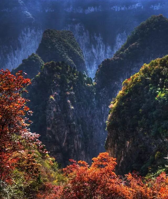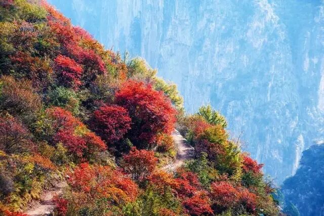 红叶铺山、彩林满目!五斑斓的颜色好像在弹奏着沁人心脾的乐章,此时的通天峡是一年中最迷人的季节!
