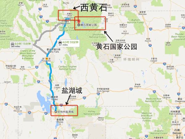 Yellowstone进入公园,路线为:盐湖城――Idaho falls――西黄石West Yellowstone。从盐湖城到Idaho