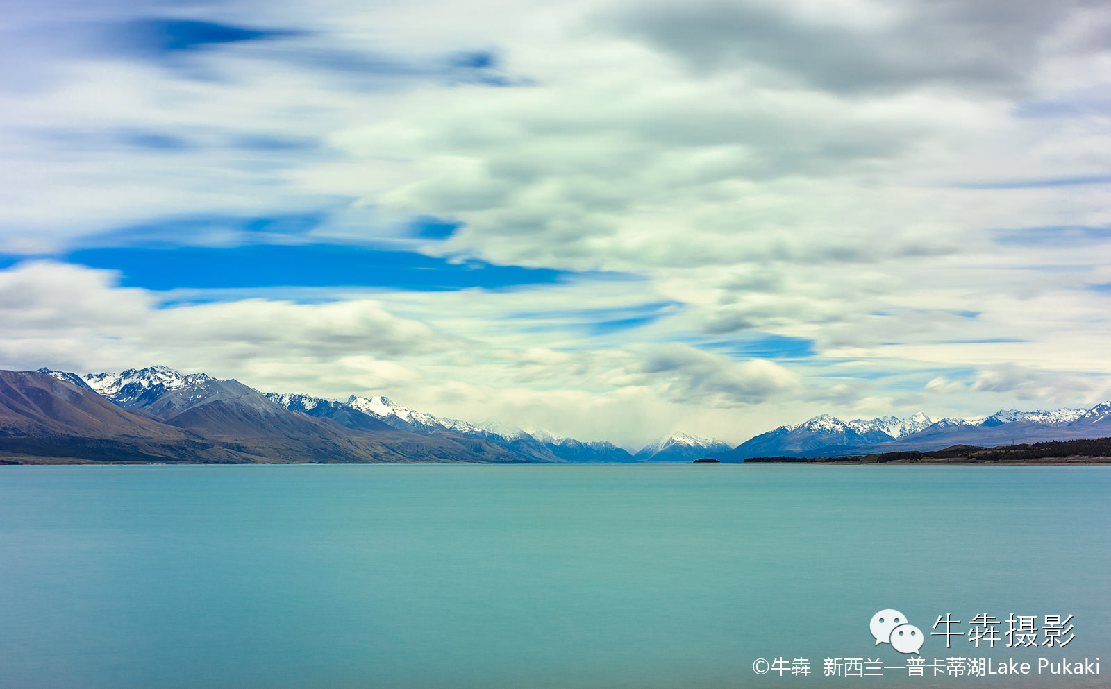 11月30日清晨,拍摄蒂卡普湖日出(结果没起来T_T,不过好在也大阴天^_^b),早餐后到下一站:新西兰三大国家公园之一的库克雪山国家公园Mount Cook,途径普卡基湖Lake Pukaki。
