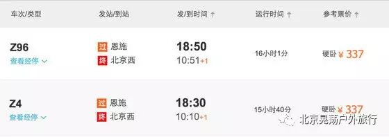订票♥贴士:恩施→北京的返程车票可能不好买,所以建议大家购买重庆或万州→北京的返程票,车次不变即可,