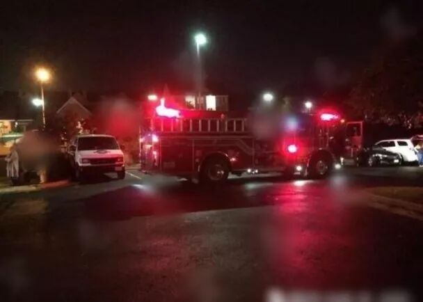 当地消防部门接报后,迅速出动5辆消防车和1辆警车,其中一辆消防车更启动云梯,