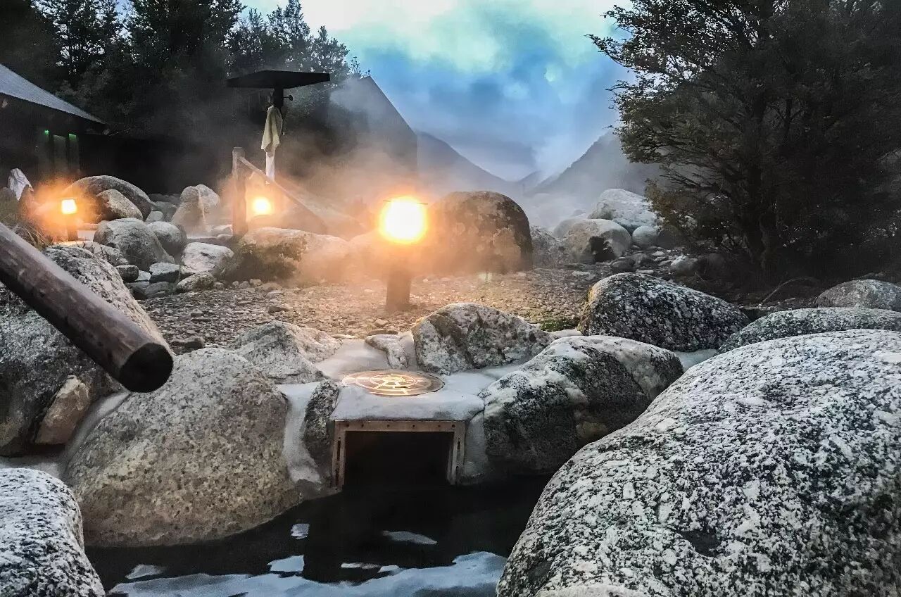 经朋友TED介绍,第二天我们去完超市买好干粮就驱车前往Maruia Spring温泉酒店。南岛的温泉在基督城旁边有两个,一个叫Hanmer Springs,去的人多,也稍近一些,将近两小时的车程。但对于我这种只想看风景发呆的人,是宁愿多开40分钟车,去一个人少的温泉。