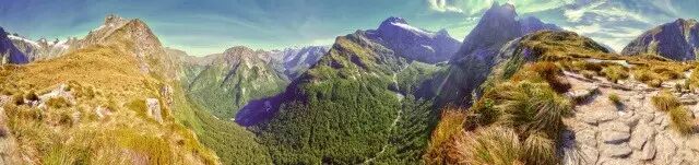 峡湾是新西兰最具代表性的自然景观,已经被列为世界遗产区(World Heritage Site)。新西兰峡湾是10万年间冰川流动而形成的奇观,“飞流直下三千尺”的瀑布冲泻入深不见底的峡湾,茂密的原始雨林紧紧着“依偎”着雄伟的山脉,泛光的湖面和花岗岩山峰却依然保持着它们一千年前的“容颜”。