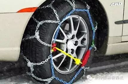 根据新西兰法律规定,在雪地上行车,必须给车辆安装正确的防滑链,也就是俗称的“雪链”(snow chains),以免在冰雪地行驶时打滑。大多数租车公司都会提供防滑链的租赁,并演示正确的安装和使用方法。在新西兰冬季行车,如果看到下面的标志: