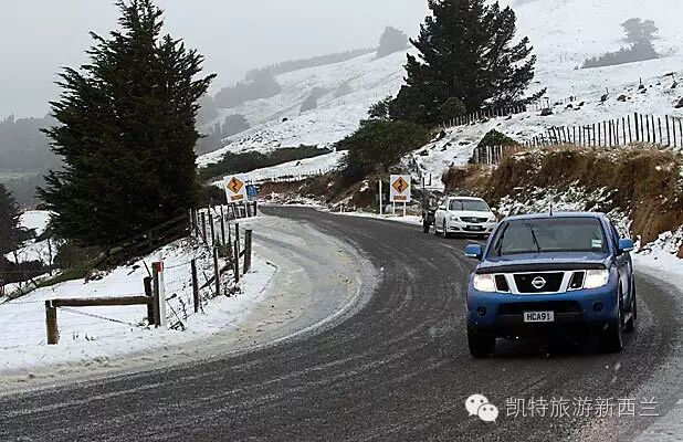 因为是岛国,新西兰气候温润,因此在寒冷的冬季,路面比较容易结冰。有的时候,路面冰层很薄,并不会很明显的反射光线,这种很硬很滑的薄冰,就叫做“暗冰”。冬季在河流湖泊周围,以及林荫、阴湿地带,经常容易出现暗冰。开车不小心开到暗冰上,如果惊慌或者采取不当处理措施,很可能使车辆失去控制。因此,冬季在新西兰,尤其是在南岛自驾,要时刻注意以下几点: