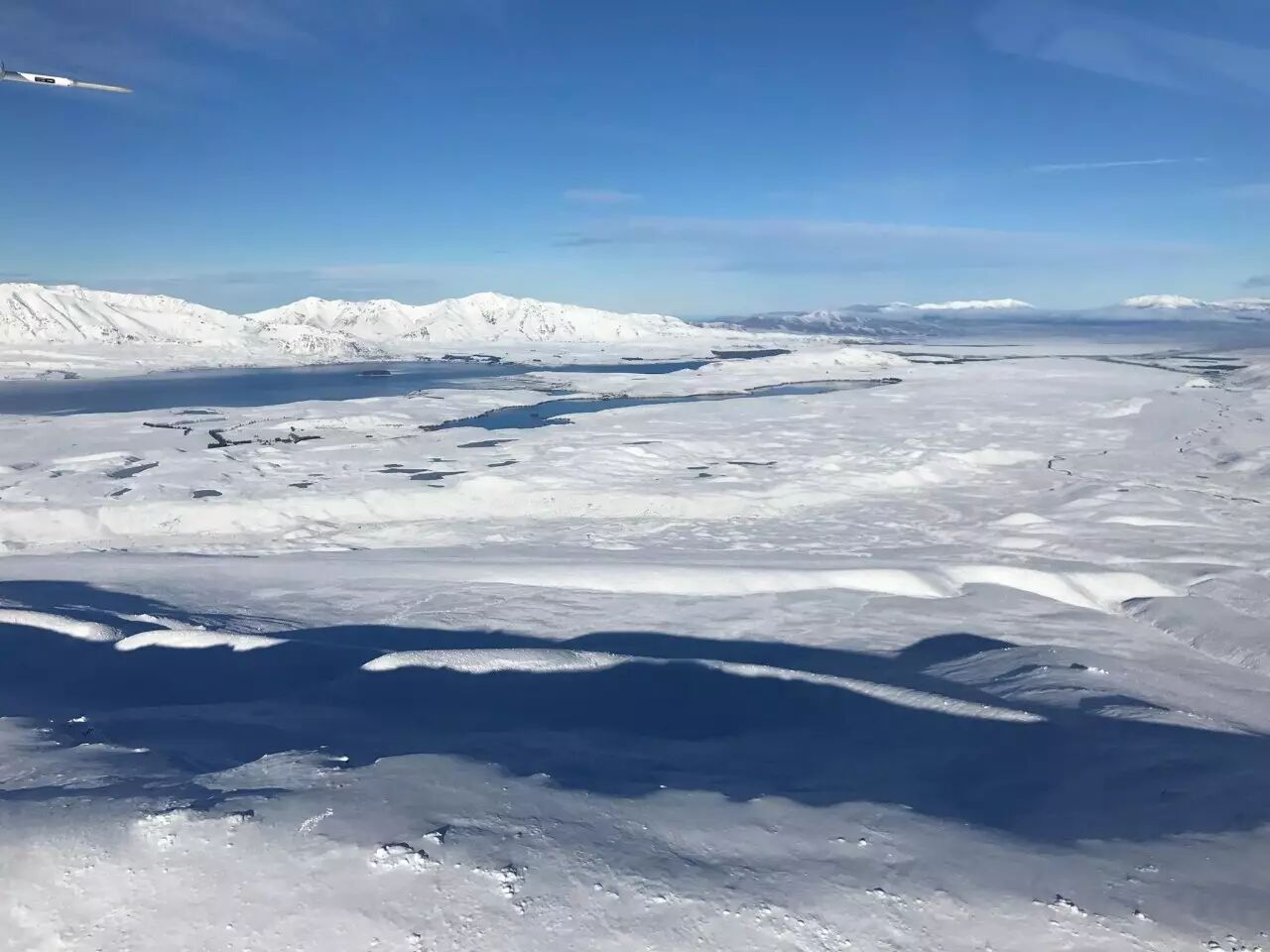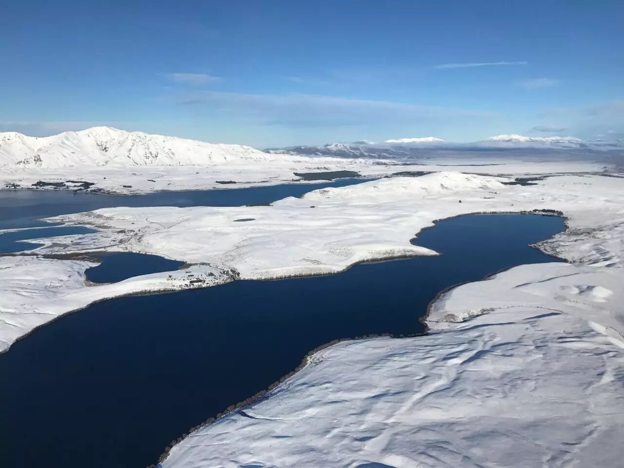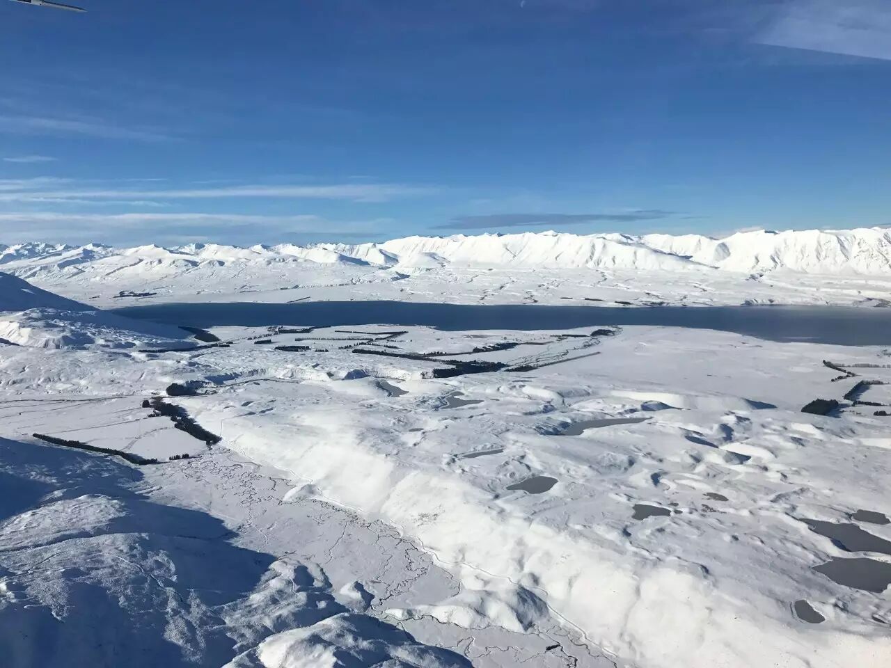 从空中俯瞰Lake Tekapo是白茫茫一片(credit:@airsafaris)