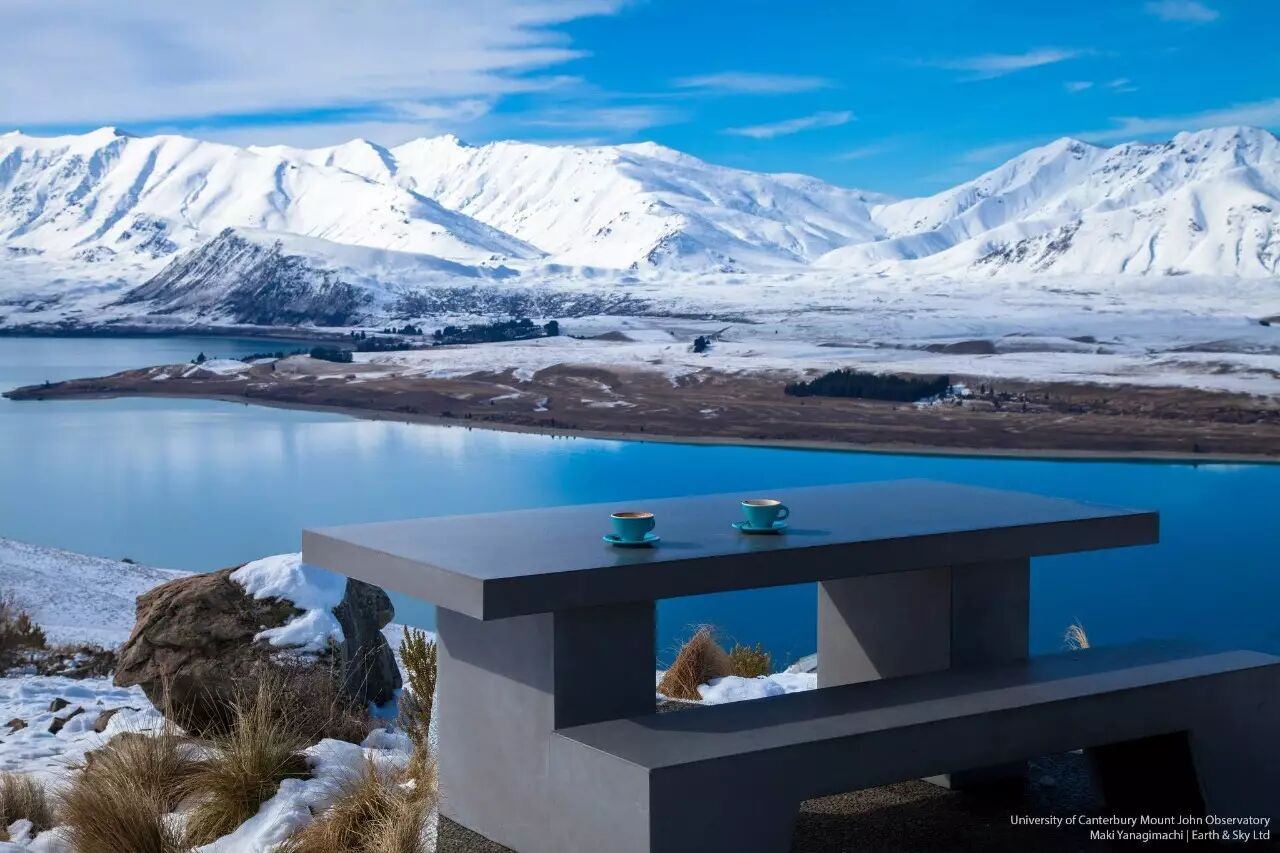 大雪过后,在Mt John山顶上喝上一杯flat white也是极好的~
