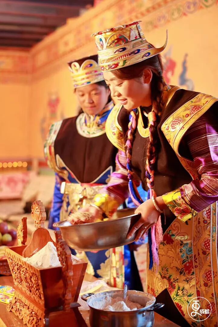 按照习俗,初一早上主人要敬客人青稞酒。拉姆和顿珠次旺拿着青稞酒壶,给每一位住在家中的客人送上祝福。“洛萨扎西德勒。”家里的客人们也学会了这句真挚的祝福语。初一的早饭要吃结达。