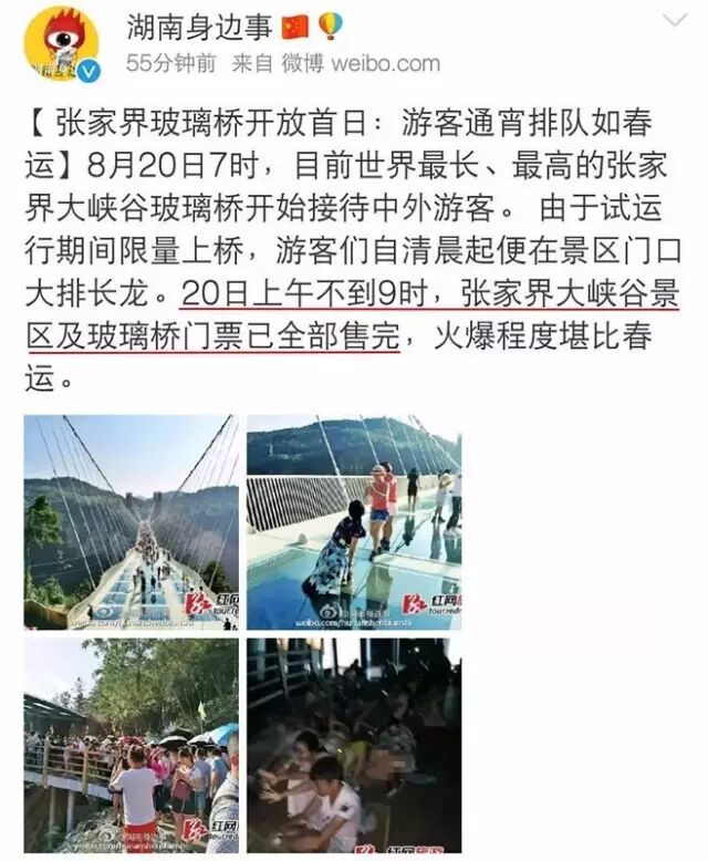 张家界大峡谷景区和玻璃桥的门票已经全部售完