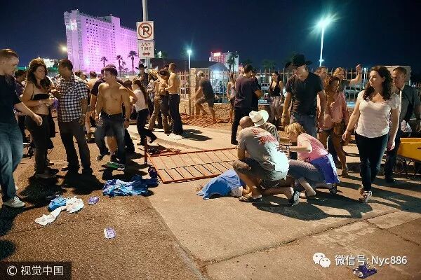 有在场人士拍下事发情况,可见观众争相逃出活动场地;从高空角度拍下的画面,可见群民突然四散逃跑。而现场照片亦可见,有观众浴血倒地。南内华达大学医学中心发言人仅称,接收了数名伤者,但未说明伤势及其他详情。