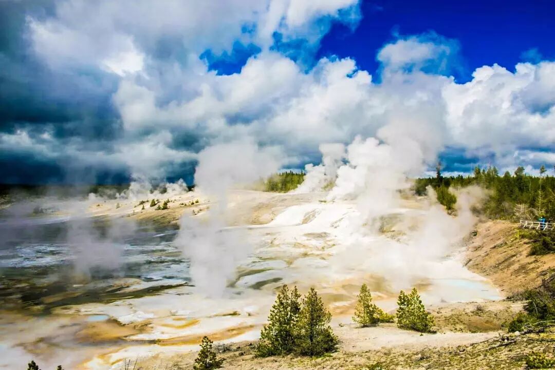 是黄石公园里最热最不稳定的一系列间歇泉,曾创造喷发高度记录380英尺的世界最大间歇泉“蒸汽船间歇泉”就在此地。