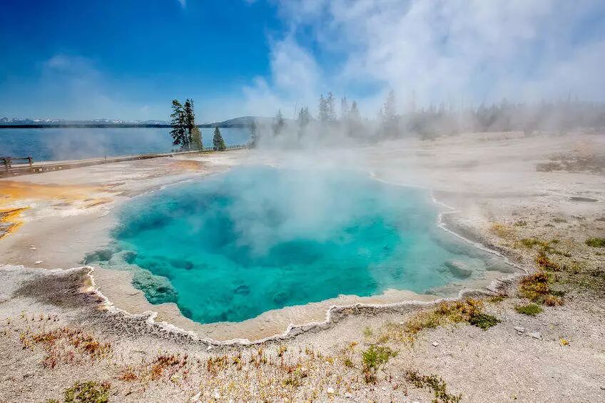 黄石国家公园内最大的内陆湖,由于园内的石头含硫量非常高,所以水质非常清澈,各种稀有水鸟栖息其上,犹如仙境。