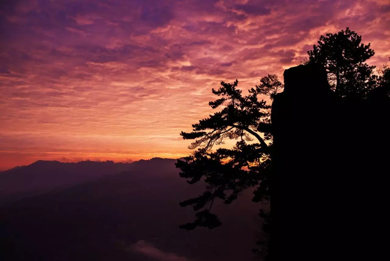 这是恩施大峡谷的五大奇观之一的绝壁环峰从。众所周知,在喀斯特地貌里,有绝壁者无峰丛,有峰丛者无绝壁。在这里不但兼而有之,而且品位之高世所罕见。峰丛之上的“迎客松”张开她那宽广的双臂笑迎天下游客。“鞠躬笑迎天下客,颔首恭送环宇宾”,彰显了土家儿女的好客与朴实。绝壁环峰从配土家“迎客松”再加上恩施大峡谷日出,自然而然的形成了世界少有的奇景。