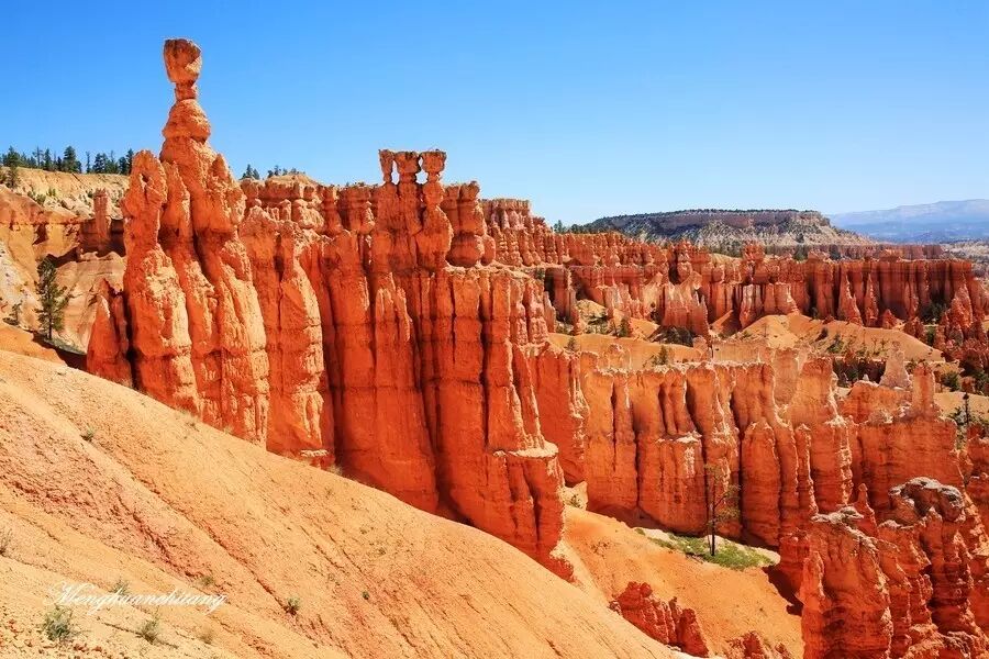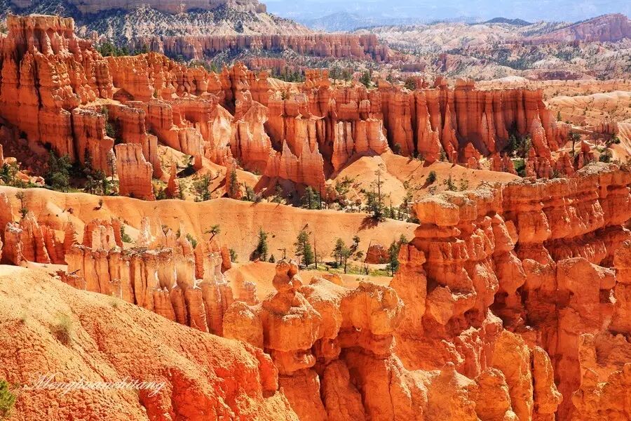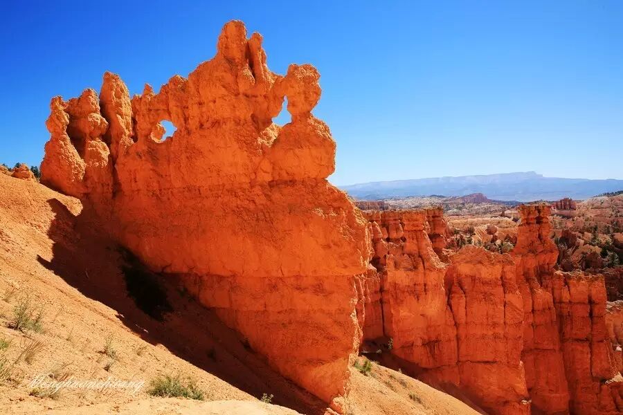 水流侵蚀而成,所以其在技术上并非峡谷。其为向源侵蚀将庞沙冈特高原新生代的地层挖开而成。此侵蚀法制成了众多精巧与色彩缤纷的尖柱形岩石,名为岩柱,可高达200英尺(60米)。一系列的露天剧场在公园内延绵超过20英里(30公里)。其中最大的为布莱斯露天剧场,长12英里(19公里),阔3英里(5公里)与深800英尺(240米)。