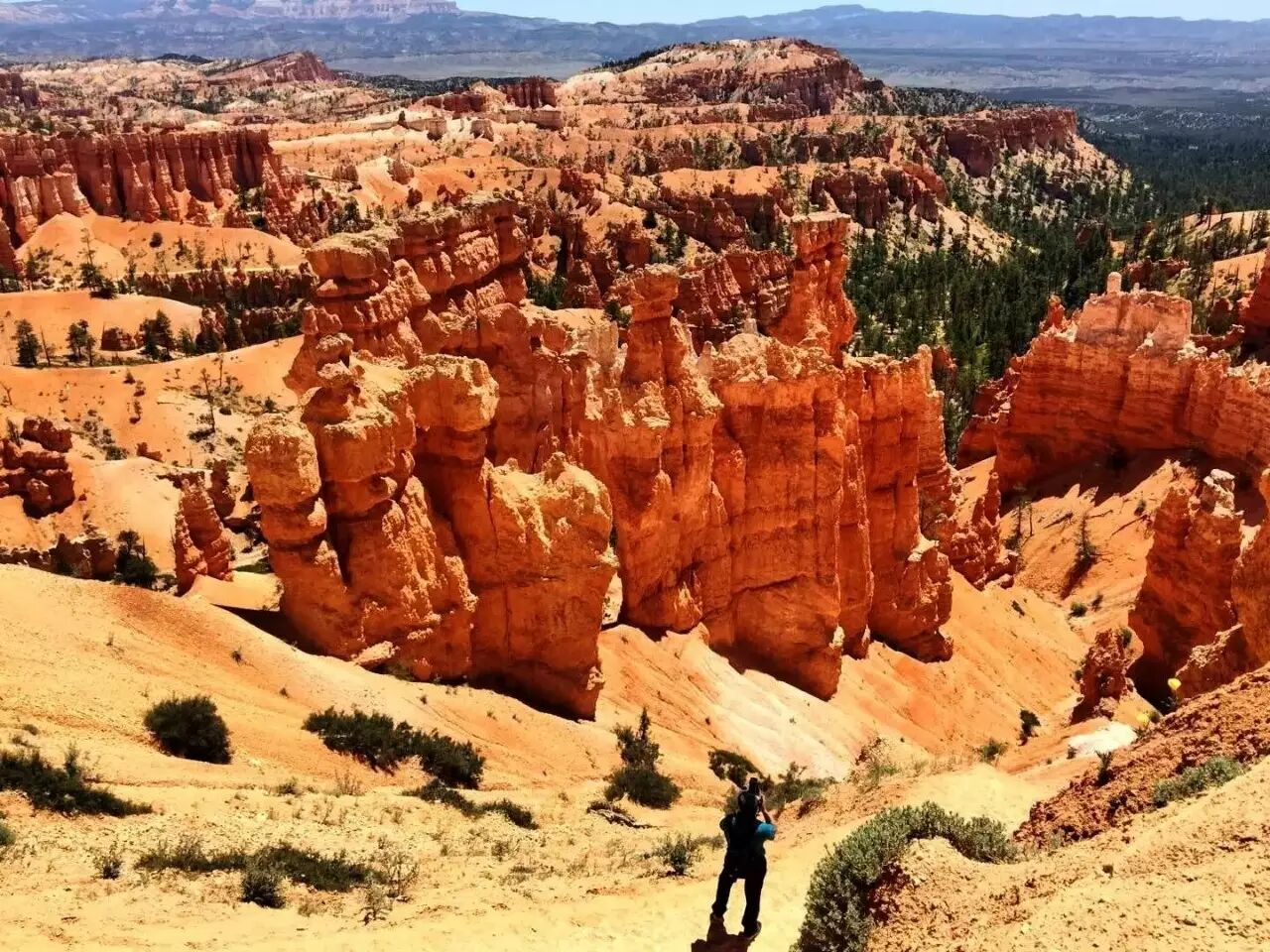 布莱斯国家公园最高点是彩虹点,在这里,宝瓶星座高原、布莱斯露天剧场、亨利山脉、赤岩断崖、白岩断崖。其位于科罗拉多高原并横越庞沙冈特高原的东南侧。游客通常会登上高原并望向其内的包含断层的山谷与其旁边的帕里亚河。而Kaiparowitz高原的边缘则将山谷的对面合上。宝瓶星座高原、布莱斯露天剧场、亨利山脉、赤岩断崖、白岩断崖。皆可看到。从崖顶望下去十分壮观。布莱斯国家公园中的岩石层非常漂亮,在阳光的映照下,岩石的表面产生像火一样的颜色。