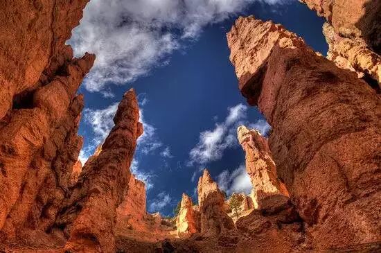 布莱斯峡谷给人的第一印象特别戏剧性,半圆形的岩石盆地如同一个“自然露天剧场”。这些活龙活现的雕塑有些成排站着,有些坐着,有些相互依靠着。在这个巨型的露天剧场中它们都在始终如一地演绎着属于自己独特的角色,可以看到他们的脸,清晰如他们变成岩石前的像貌,这就是布莱斯峡谷“自然露天剧场”的魅力所在!
