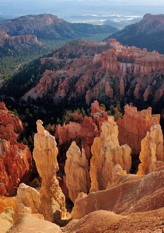 游人在布莱斯公园最主要的参观项目当属岩柱,岩柱是一种由于风沙、水以及湖床日积月累侵蚀而成的沉积岩,因为沉积岩层的金属元素含量不同,峡谷中的岩柱群都会展示出不同颜色的瑰丽景致,红色、白色、橙色和粉红色岩柱尤为奇幻夺目,这奇特的自然景观被游客誉为“天然石俑的殿堂”。
