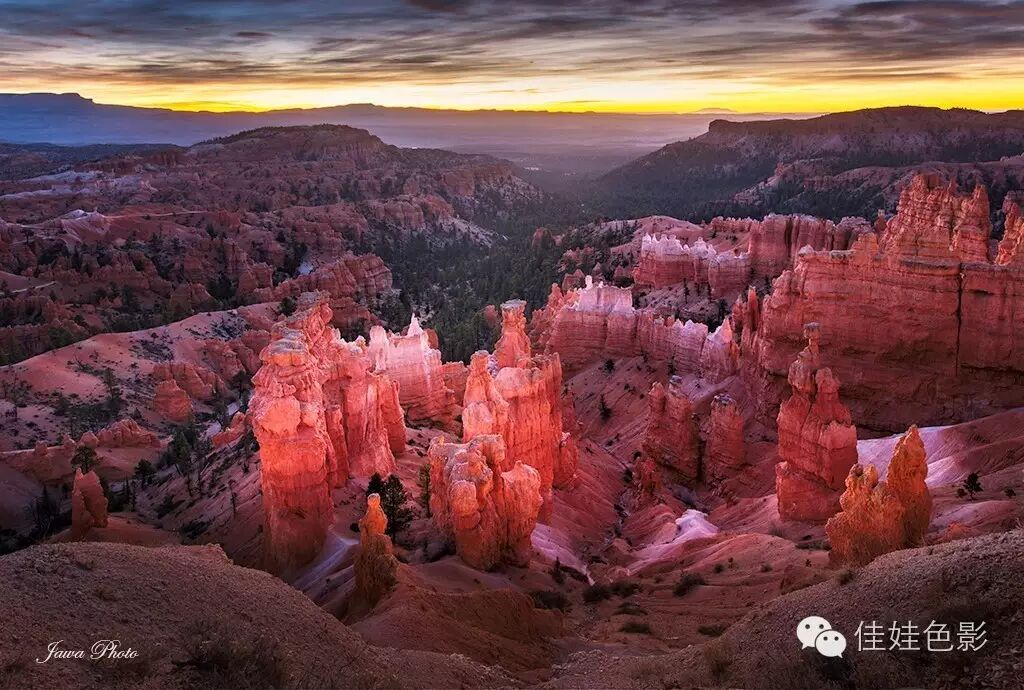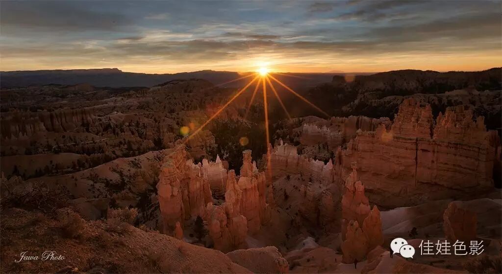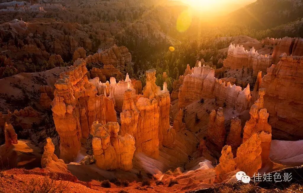 布莱斯峡谷国家公园是个神奇的地方,以前已经来过多次,步道也走过的。但是这次徒步党设计的路线是把几条步道串起来,走了一个大圈。早晨我们到达布莱斯峡谷的时候,天还是全黑的,连厕所都找不到呢。当东方开始露出鱼肚白时,我们所在的位置更加靠近 Sunset Point,可以远远看到 Sunrise Point 那边已经挤了很多人,所以干脆就在 Sunset Point 这边拍了,太阳基本是正对着我们升起的,也不错啊。