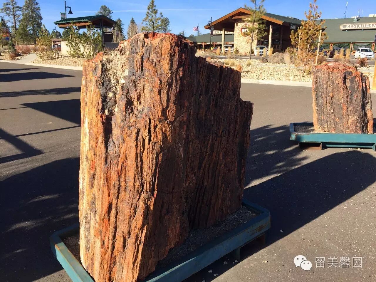 酒店路边摆了两截硅化木,引起了我的兴趣,从外形看像是美国海岸红杉。
