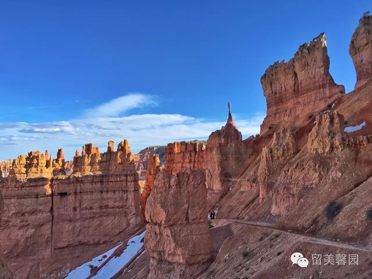 谷底很多地方还有大量的积雪,但却没有寒冷的感觉。高原丰沛的降雪,是布莱斯峡谷景观的重要成因。