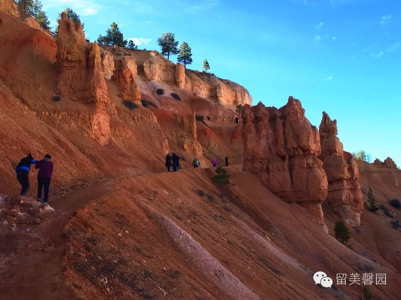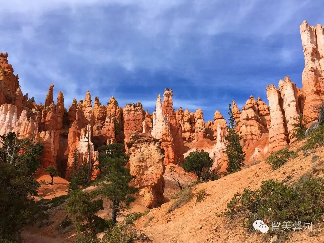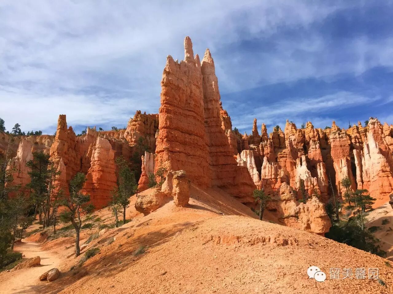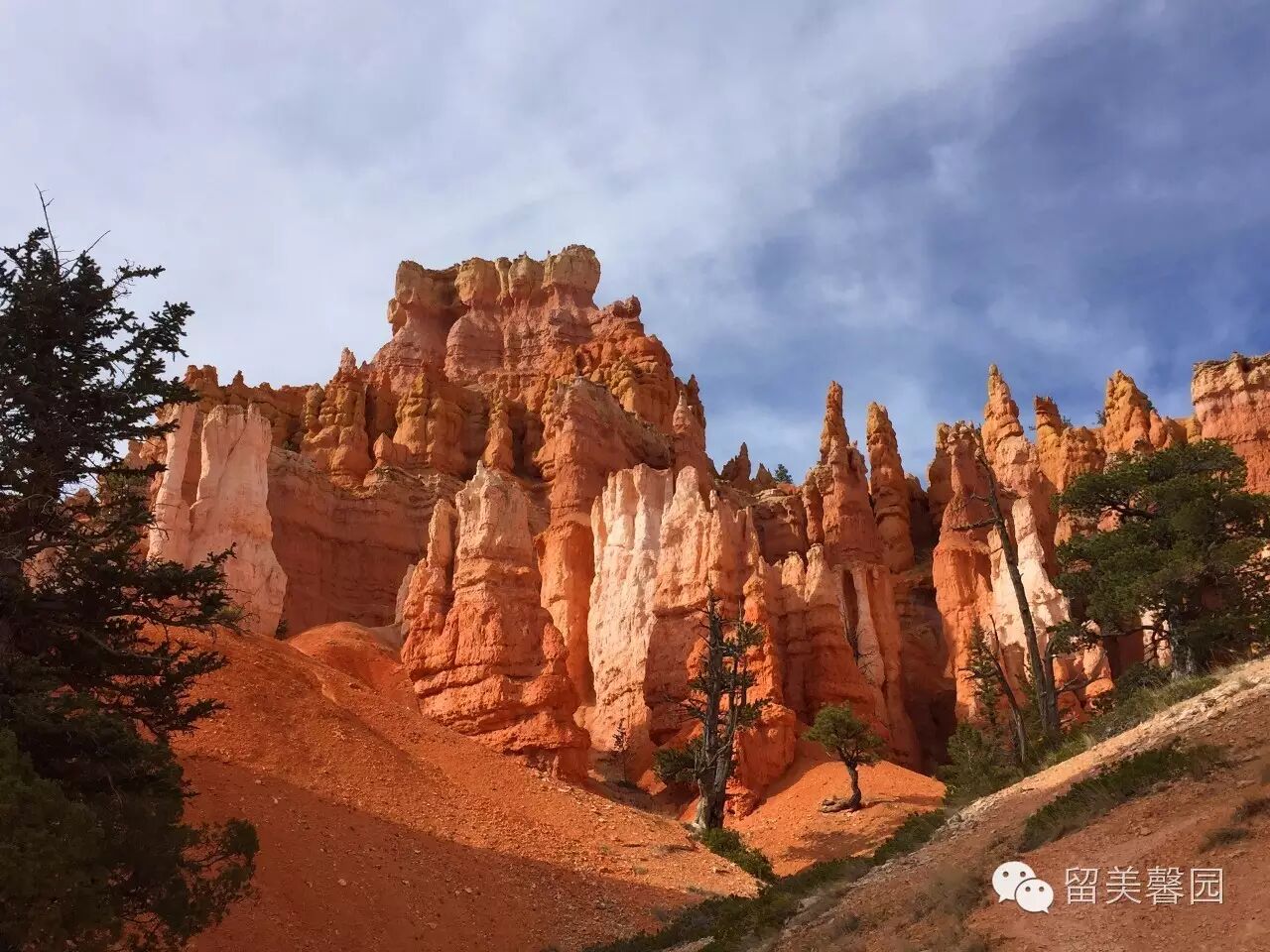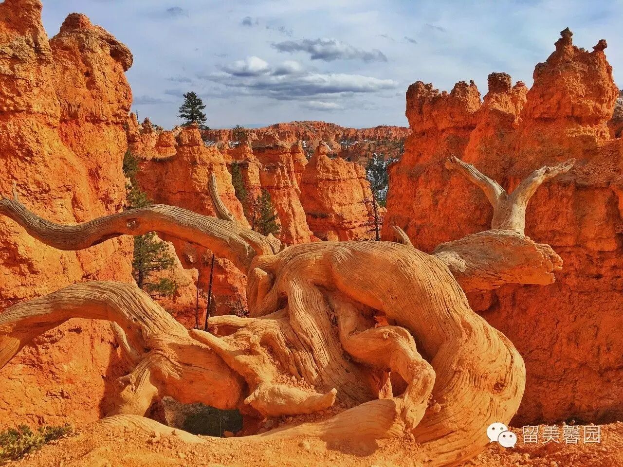 大量的降水,不仅侵蚀布莱斯峡谷红砂岩石,造就了壮美的雕塑,还润育了谷底大面积的沼泽松和桧树。