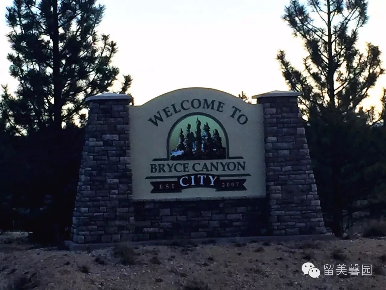 布莱斯峡谷市的欢迎招牌,在晨霭中逐渐变得明亮,我们已经准备离开了。
