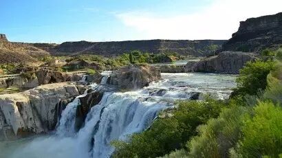 迎着初升的朝阳,整装出发。沿途穿越浩瀚无边的沙漠盆地,山地丘陵;感受美国大西部的丰富地貌和迷人的田园风光。于午餐后抵达皮瑞尼铁桥*;它是全世界高空跳伞及高空弹跳闻名的场地之一。随后前往蛇河峡谷*,参观肖松尼瀑布*。肖松尼瀑布也叫做西部的尼亚加拉,远远便可以听到它浩大的声势。看蛇河蜿蜒流过、一泻千里;为明天的黄石公园做热身。夜宿爱达荷州普克泰罗。