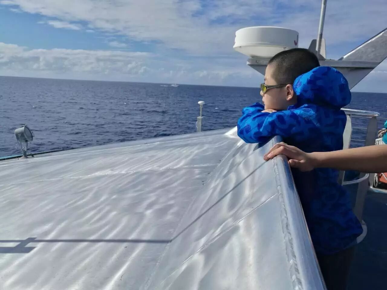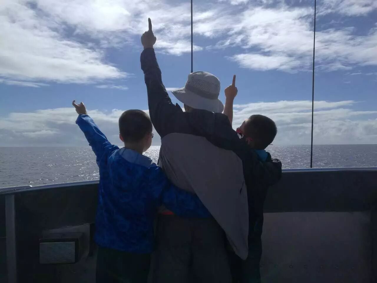 貌似孩子们最深刻的感受一直是在船上,在开往格林岛的大猫号船上,孩子们始终很兴奋,涂好了防晒霜就一直在顶层甲板看海景不下来了