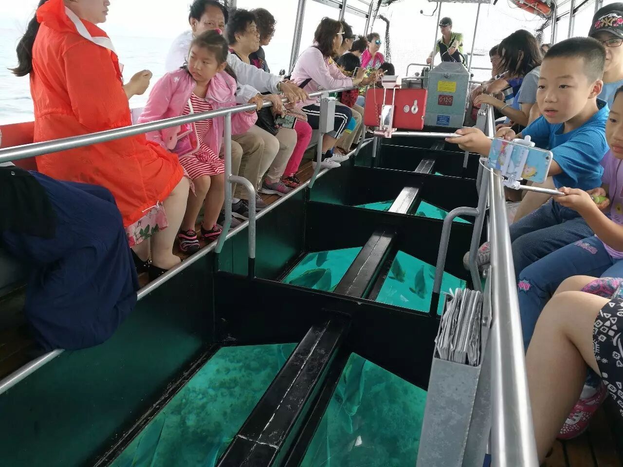 这是乘坐玻璃底观光船去看海底珊瑚和各种鱼类,真的看到了像胳膊一样粗大的海参,这要是吃起来....哈哈哈