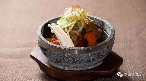 牛骨煲是missKOREA饭店的又一大特色美食。采用有机酱油、有机梨汁、糖等美味调料腌制的上等牛排放在特制的瓷器里酿制至少48小时,酱料充分入味,牛肉质地变得很软,入口醇香,甜味也深深渗入排骨内,纽约君尝一口感觉美味至极!再看一眼上次品尝牛骨煲的视频,我又开始流口水了......