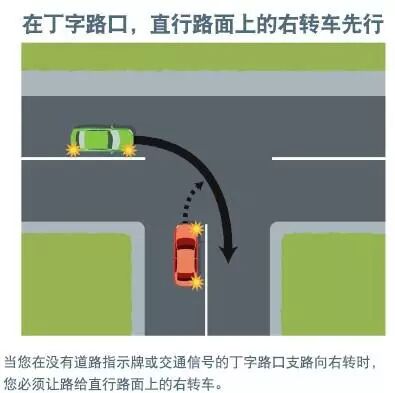 (四)丁字让直行、环岛让右行。在丁字路口,直行路面上的车(无论对方是直行还是拐弯)有优先权。准备进入环岛时,必须让右手方向的车先行。