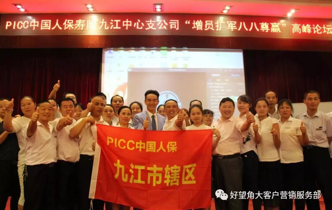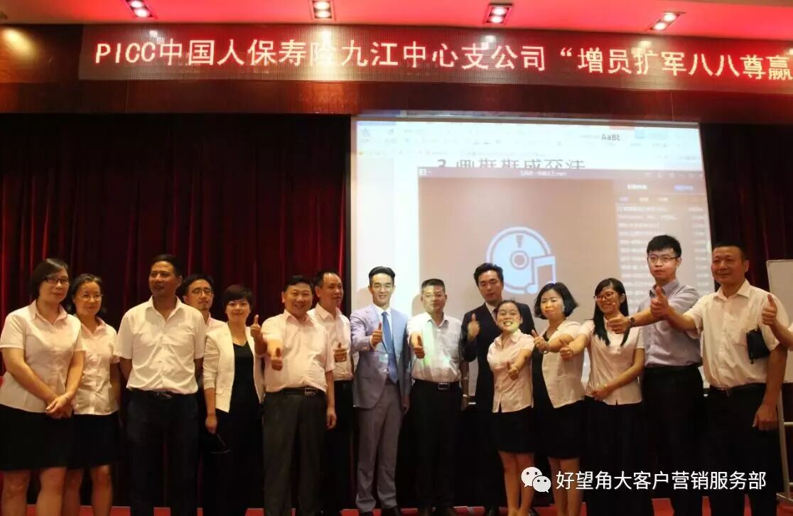 好望角全体人员预预祝九江市人保在这次尊赢产品的推广中,超额达成!