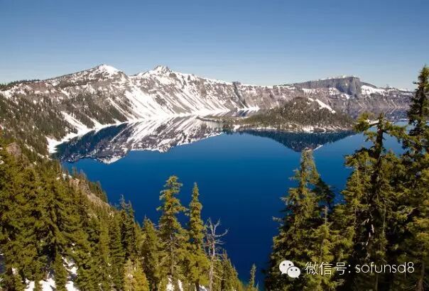 被2000尺高山崖包围的Crater Lake,湖泊疯狂的深度(1900尺!)使湖上呈现出一种美得不可思议的蓝,更令它成为最早(1902年) 被拣选出的国家公园之一!可惜的是,因为它偏远的地理位置,Crater没有得到它应得的高访客数量。