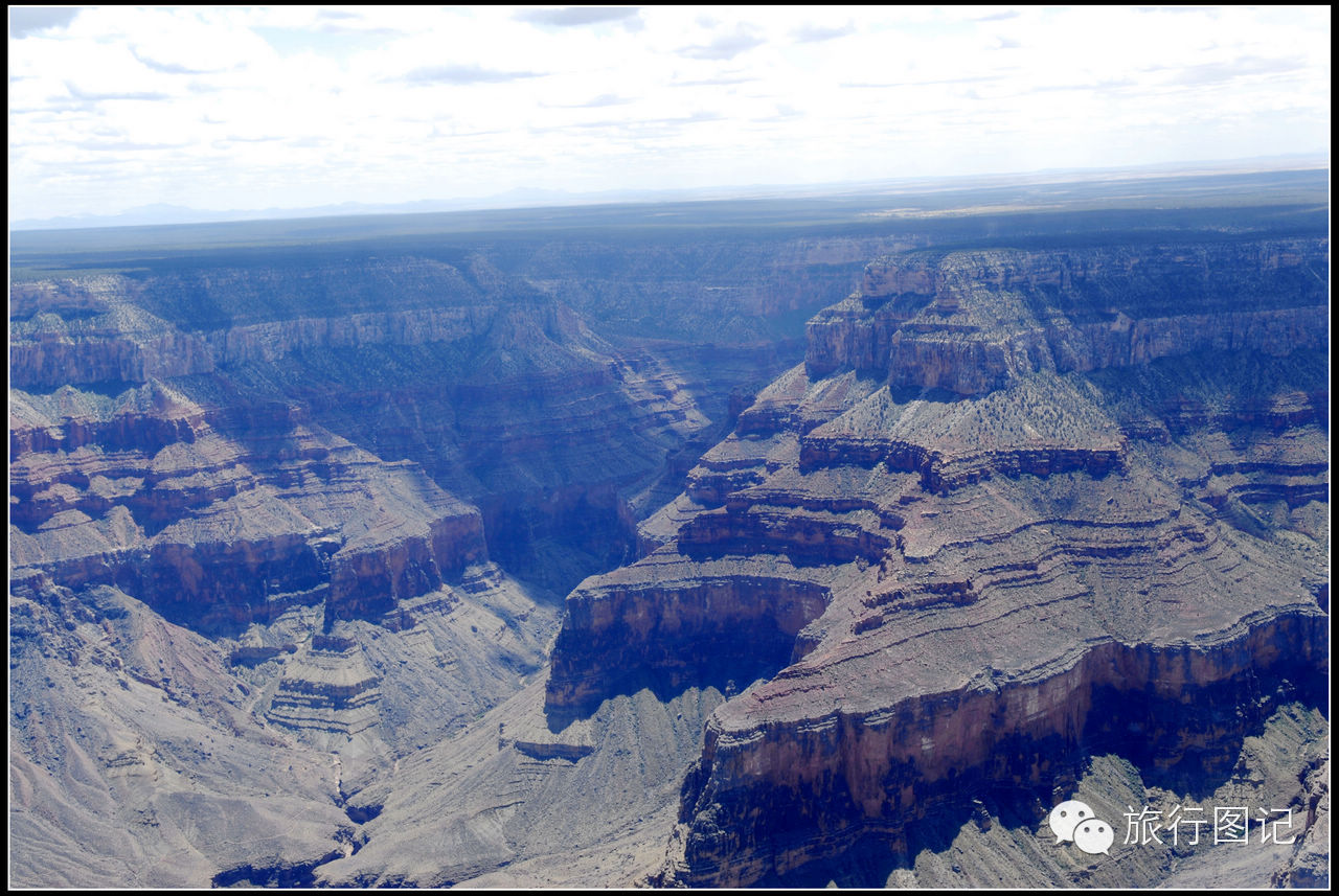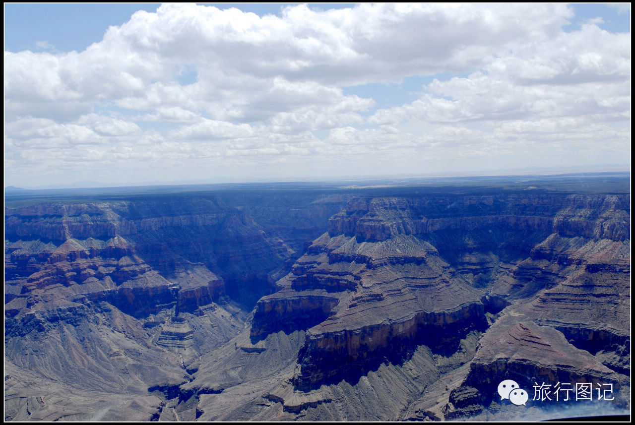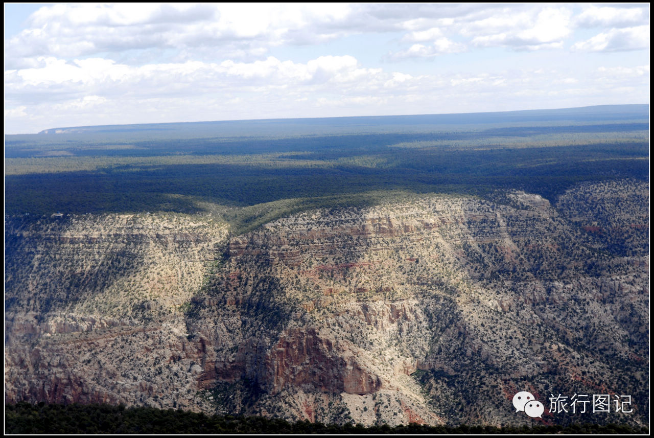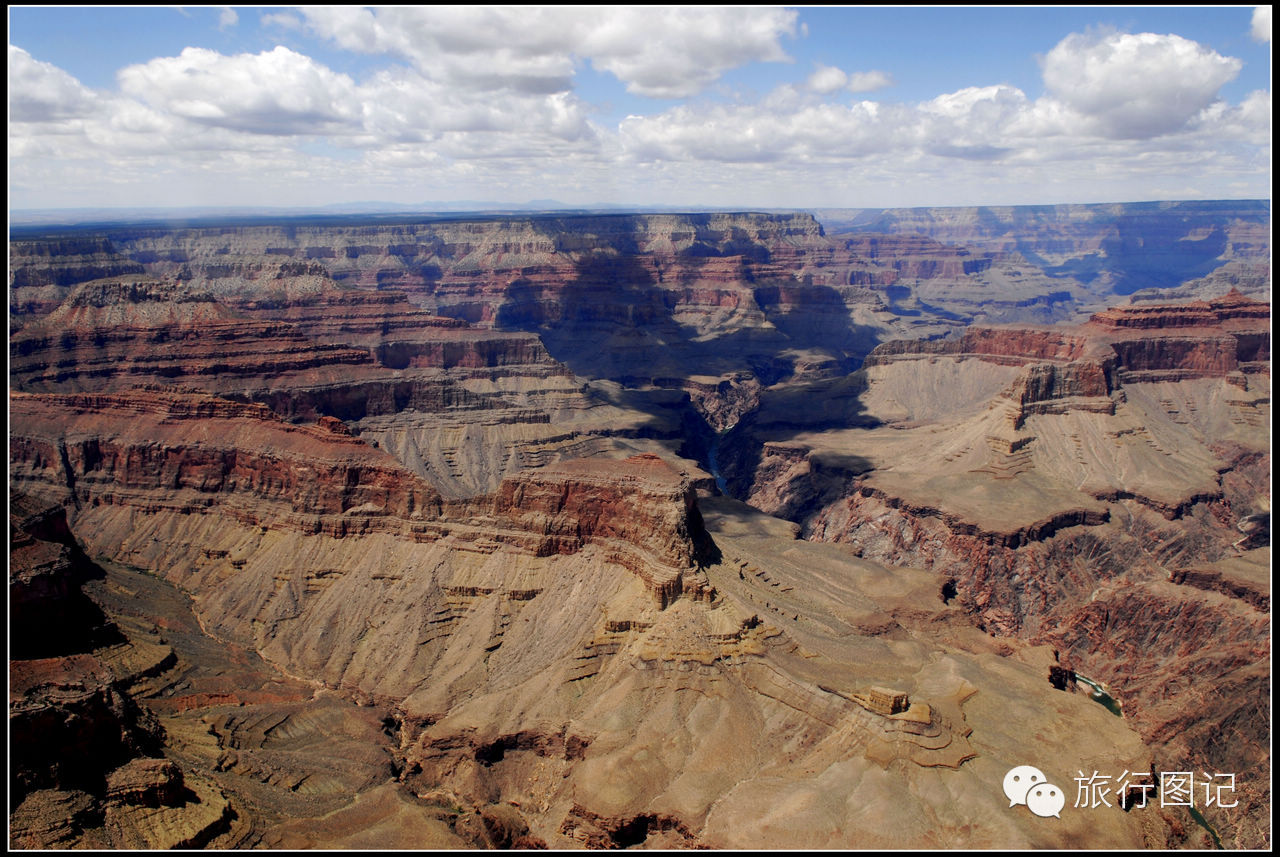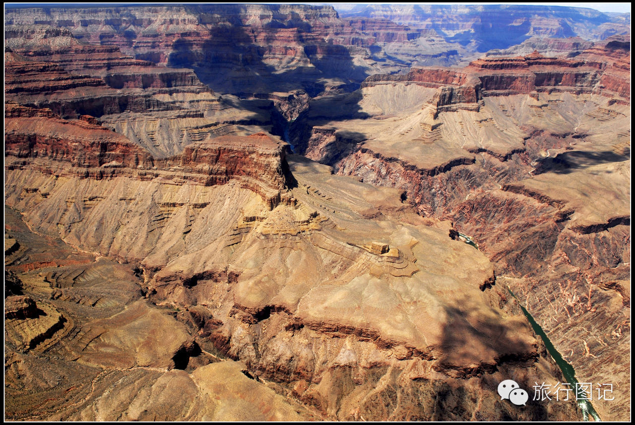 飞着飞着,在飞机的右前方可以看到,原本比较平整的高原上,突然显现出一片巨大无比的深沟巨壑,大峡谷到了。