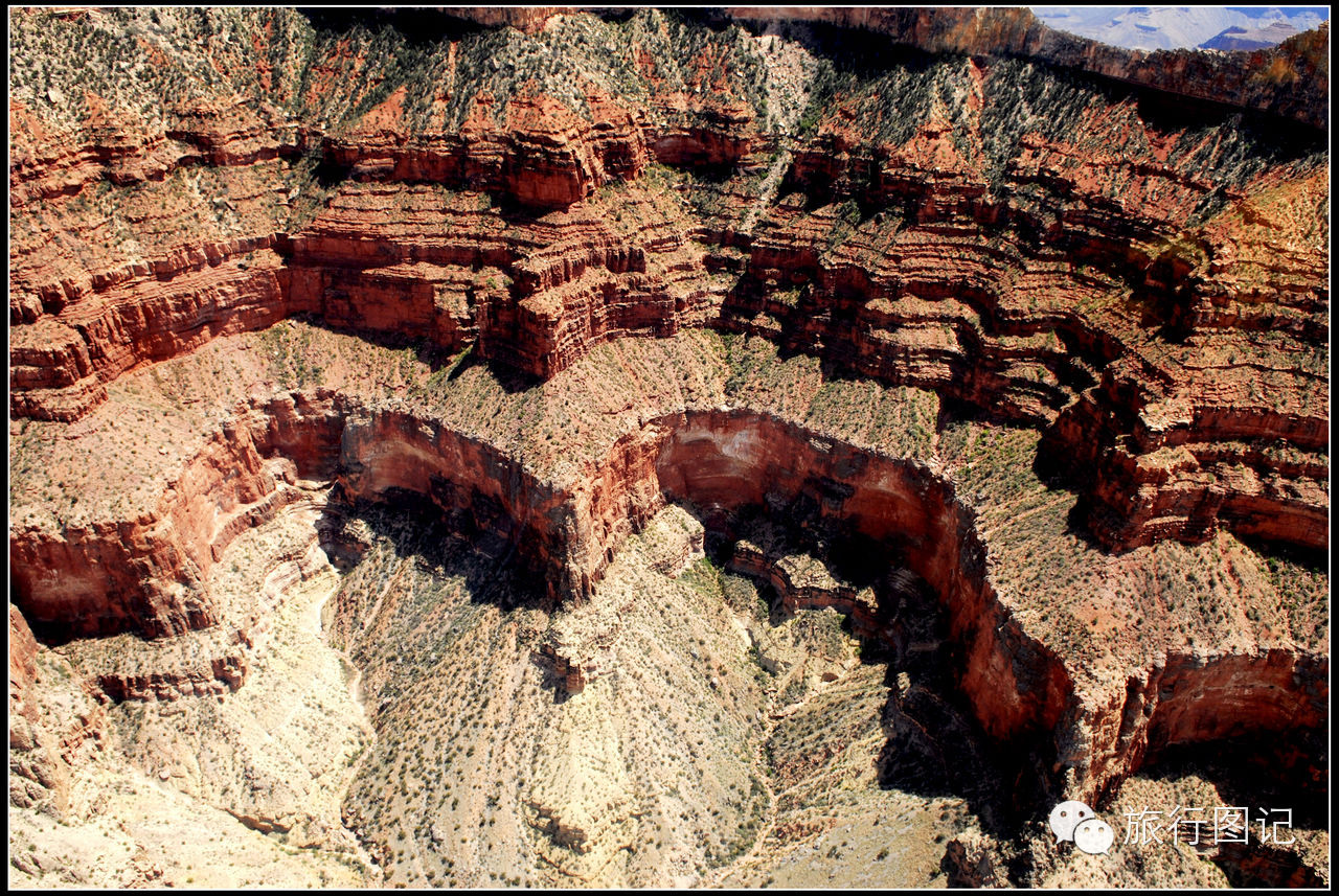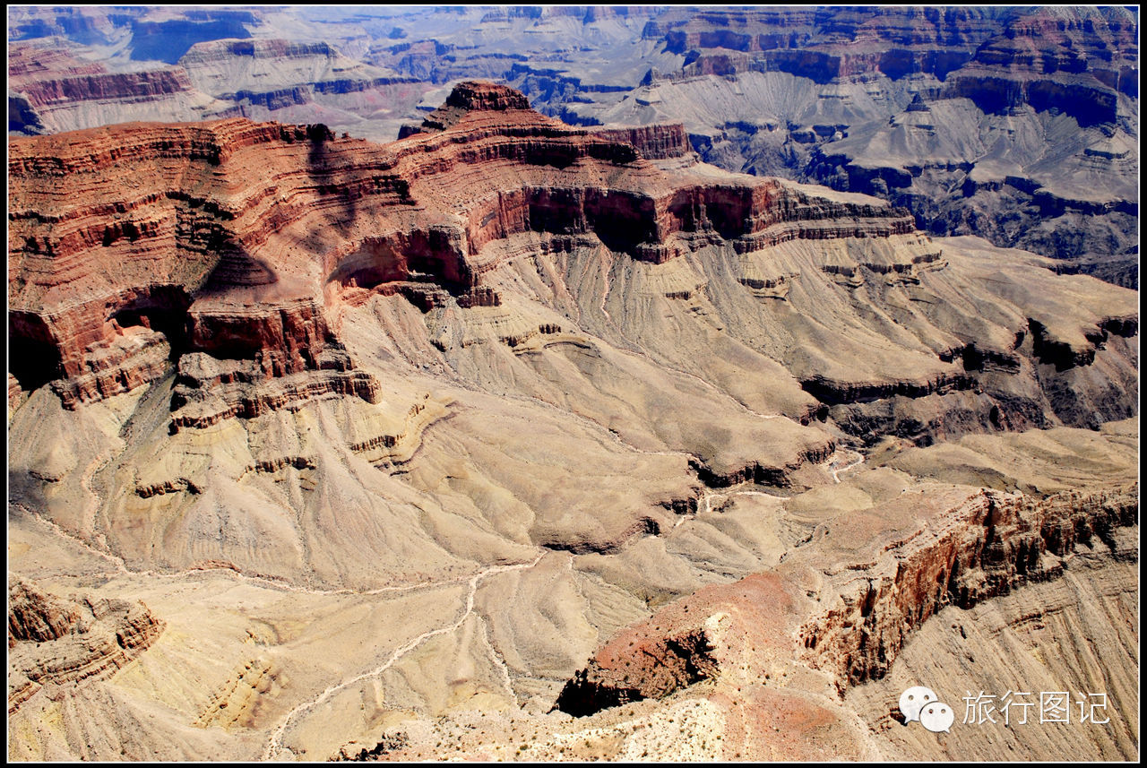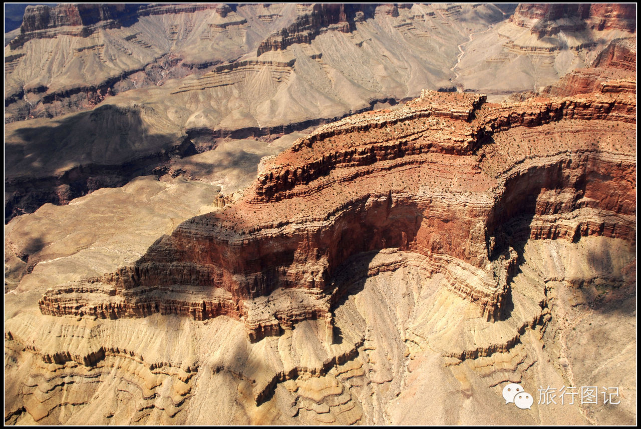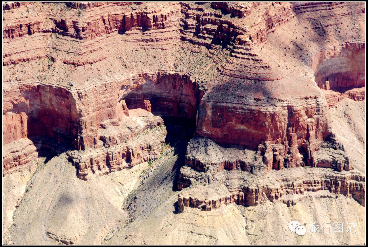 说实话,作为一名专业国际问题研究工作者,对大峡谷的历史稍微有点了解,但所见所感,乃至时隔一年以后多次回看当时拍下的各种照片,有时真的会对书本上看到的东西产生怀疑,真的有点不太敢相信书本上记载的有关大峡谷的形成历史。简单地说,看过了大峡谷的真实状况,俺有点不太相信这完全是大自然经年累月所自然塑造的,因为,在俺的高倍镜头面前,仔细看很多空中俯拍的照片,可以清晰地看到在大自然的杰作里边,确实显现出很多人工或不明文明力量的痕迹,请大家看看下边几幅照片,图中很多所谓的自然形态,完全有人力所刻意雕琢的痕迹。
