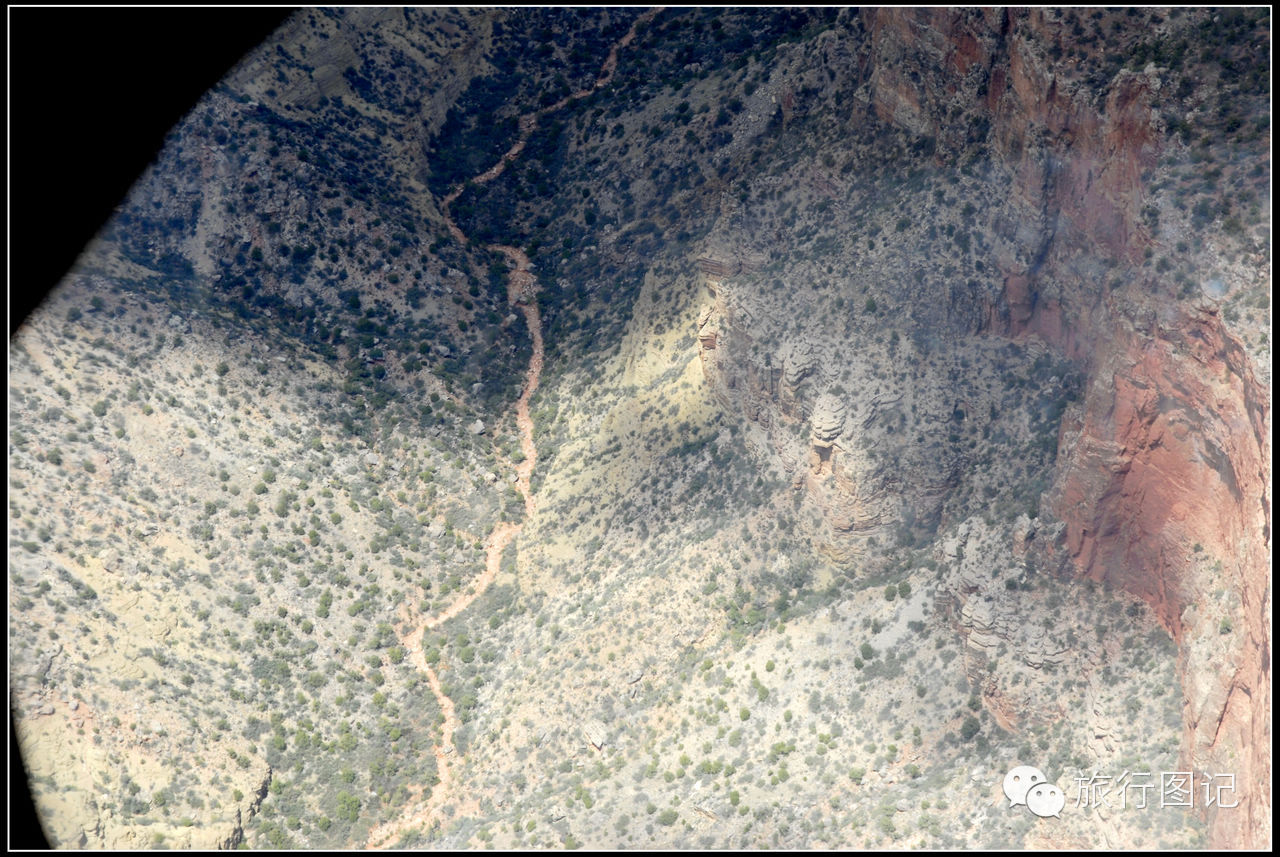 透过脚下的玻璃窗,可以看到深谷之中的羊肠小道以及日夜奔流的科罗拉多河,据说就是这条河冲刷出了大峡谷这奇特的地形。