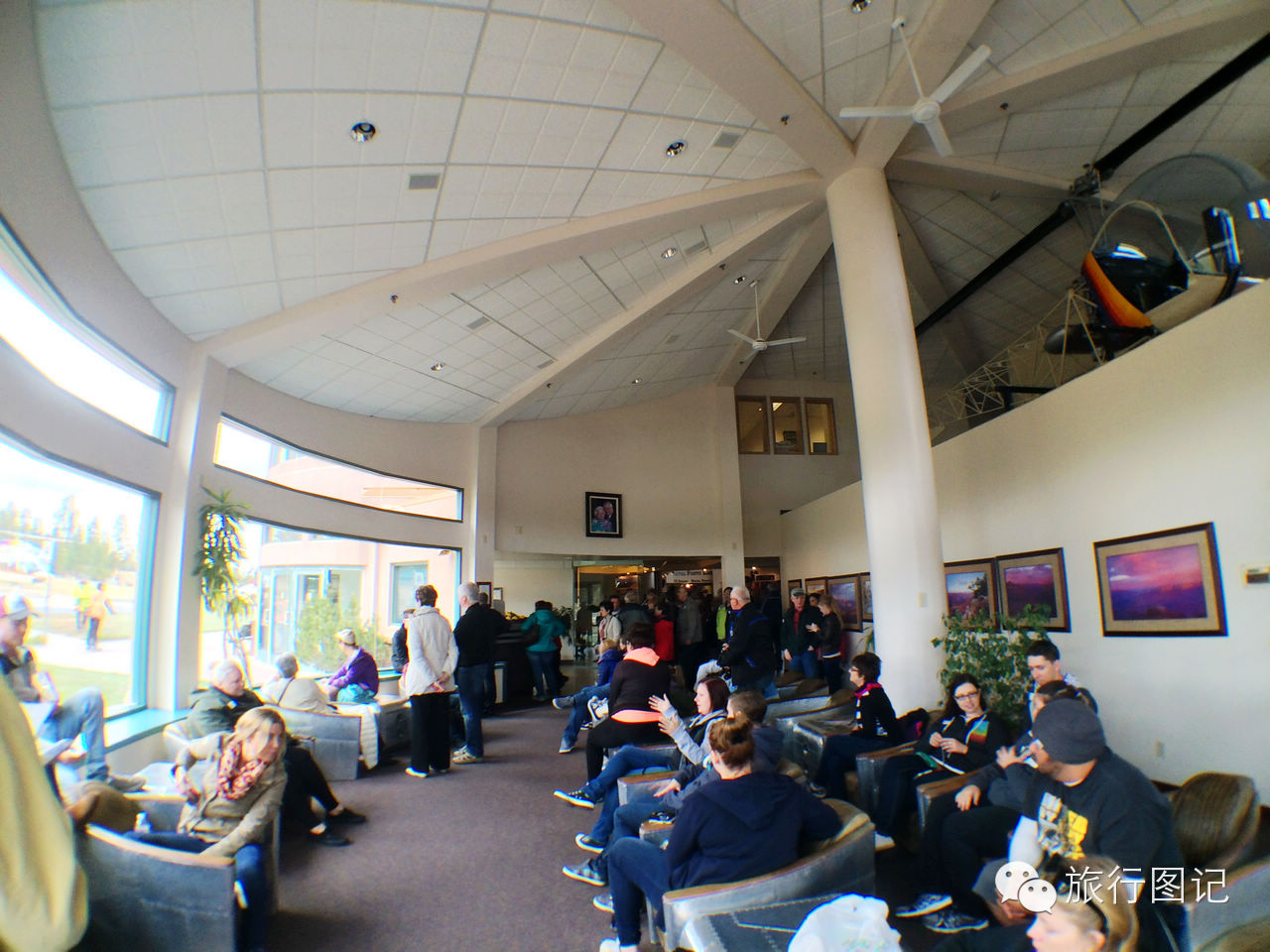 按照要求,提前一个小时进入小候机楼,里边已经开始people mountain people sea了,观察了一下,美国人和外国人差不多各占一半,外国人中,欧洲人居多,亚裔或曰华裔有三五个吧。窗外小直升机不时起降,心里有些小激动,也有点小忐忑呢。