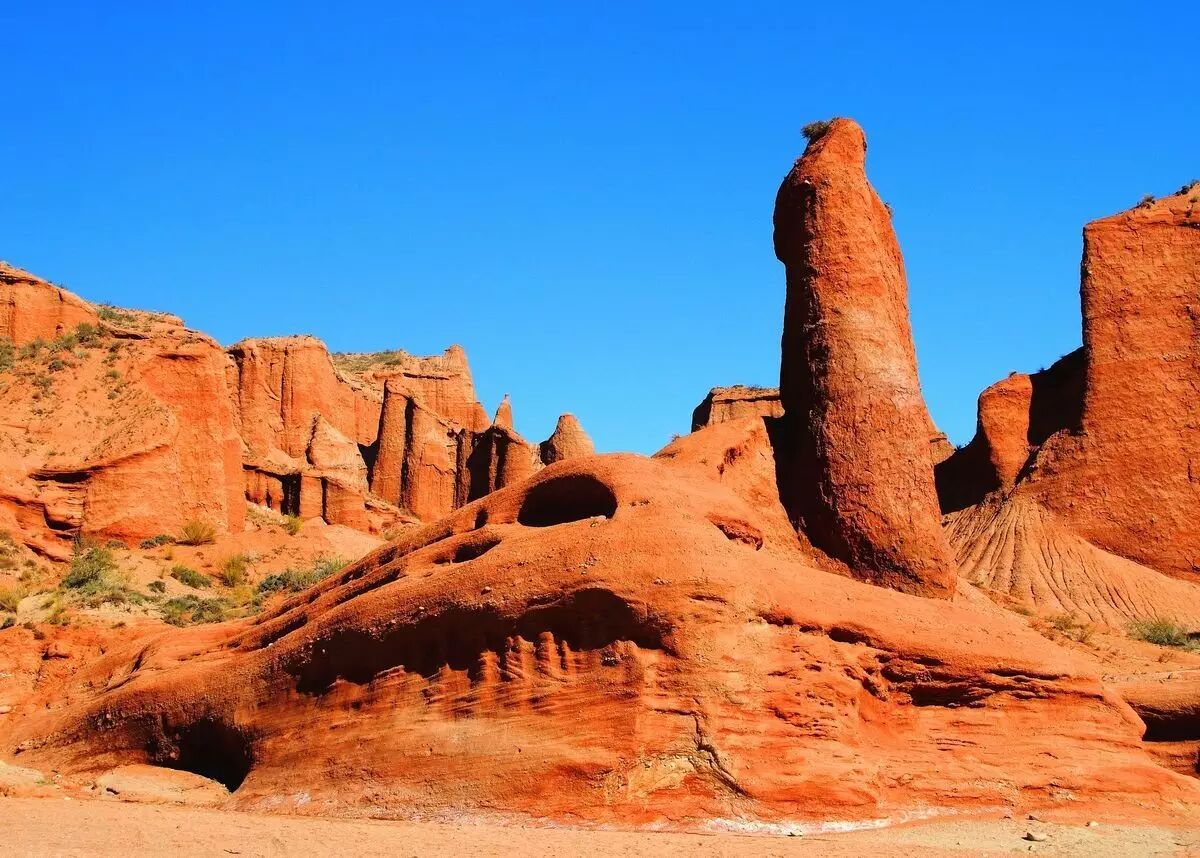 毫不夸张地说,温宿大峡谷可以轻松媲美美国羚羊峡谷,甚至比它更神秘。它曾是通往南北天山古代驿路木扎特古道的必经之地,踏入这片土地,好像进入了一片精美雄浑的自然画廊中。历经亿万年的风雨侵蚀后,断裂的岩石夹在山壁岩层中,视觉上有种说不出的雄壮之美。穿行在红色与硕大的峡谷中,好似穿越时空,逃遁在远离尘嚣的天边。