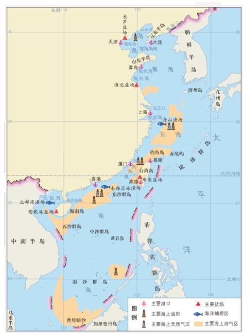 我们从这张地图上就能更清晰的了解刚才我给大家描述的中国四个海的主要分布区域。