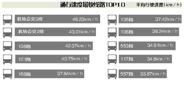 尽管公交车在很多人的心目中,行驶速度较慢,但某些线路通行却速度较快。数据显示,南昌全城公交时速最快的是机场公交3线,起点是南昌西站,终点是昌北机场,该线路平均行驶时速可达48.23公里。而时速最快的十条线路,通行速度都不可小觑,时速都在33公里以上。