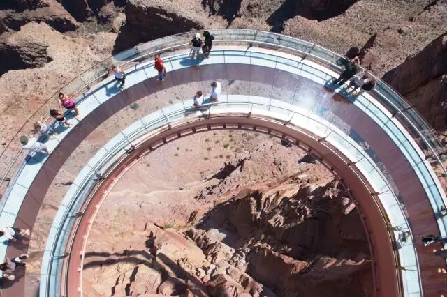 这座U形玻璃走廊由拉斯维加斯华裔企业家大卫·金与当地印第安华莱派部落合建。它是目前世界上最高的建筑物,步道突出大峡谷23米,距谷底1220米,比468米高的东方明珠还要高出好多!