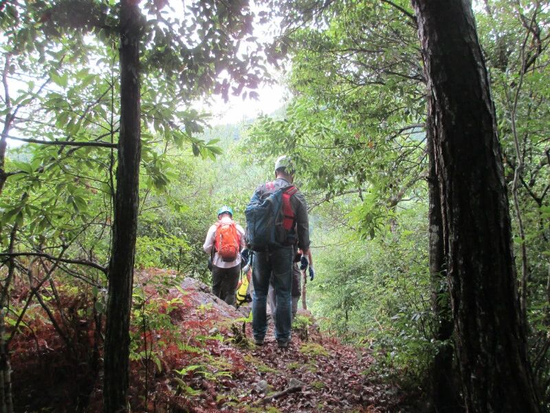官方的一套说辞后,言归正传6.15日我和农民报名参加了牛群的炉西峡穿越之旅。凌晨六点车就从温州出发,经过将近四个小时行程,到达了我们此次穿越的目的地,从一条不知名的公路下车,拐进公路旁边的一条泥泞小路。