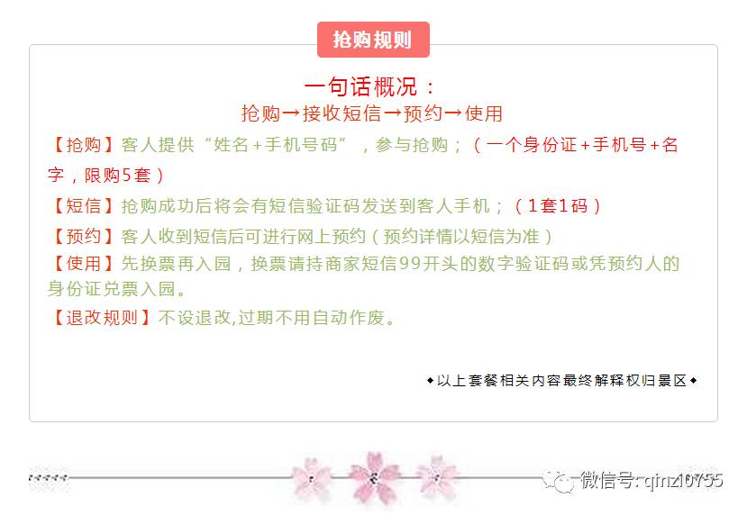 入园方式:先换票再入园,换票请持商家短信99开头的数字验证码或凭预约人的身份证兑票入园。