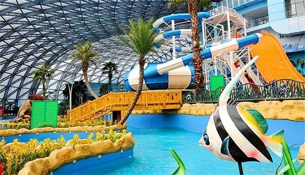 水公园两万平方米的戏水世界,震撼三米的巨浪,U型滑道、室内漂流河,刺激到不行。