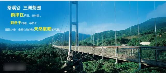 三洲茶园位于景区最深处,穿过茶翁古镇就能到达茶园区域,该区以茶园风光和山水景观为主。主要分为三大区域:闻香茶岭区、寻幽竹溪区和森林体验区。