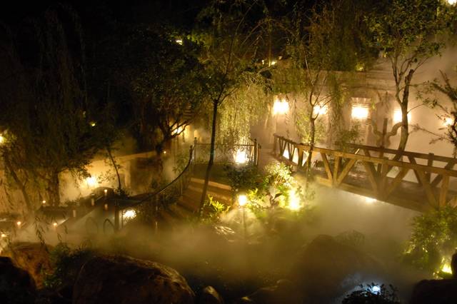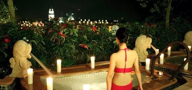 自然浴:女区美人汤以纯牛奶和玫瑰花瓣为原料,结合天然泉水,高效供给皮肤养分和水分,具有美白肌肤、延缓衰老、阻止色斑形成的功效。男区精气汤集合五味传统的优良中药,通过药物的渗透达成对肾脏机能的调理。