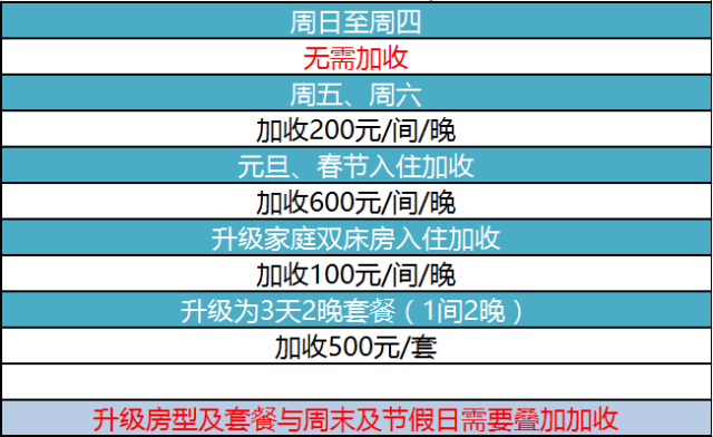 ◆ 套票内儿童超高:1.1-1.4米以下儿童早餐加收价50元/位,1.2-1.5米儿童温泉加收价85元/位;